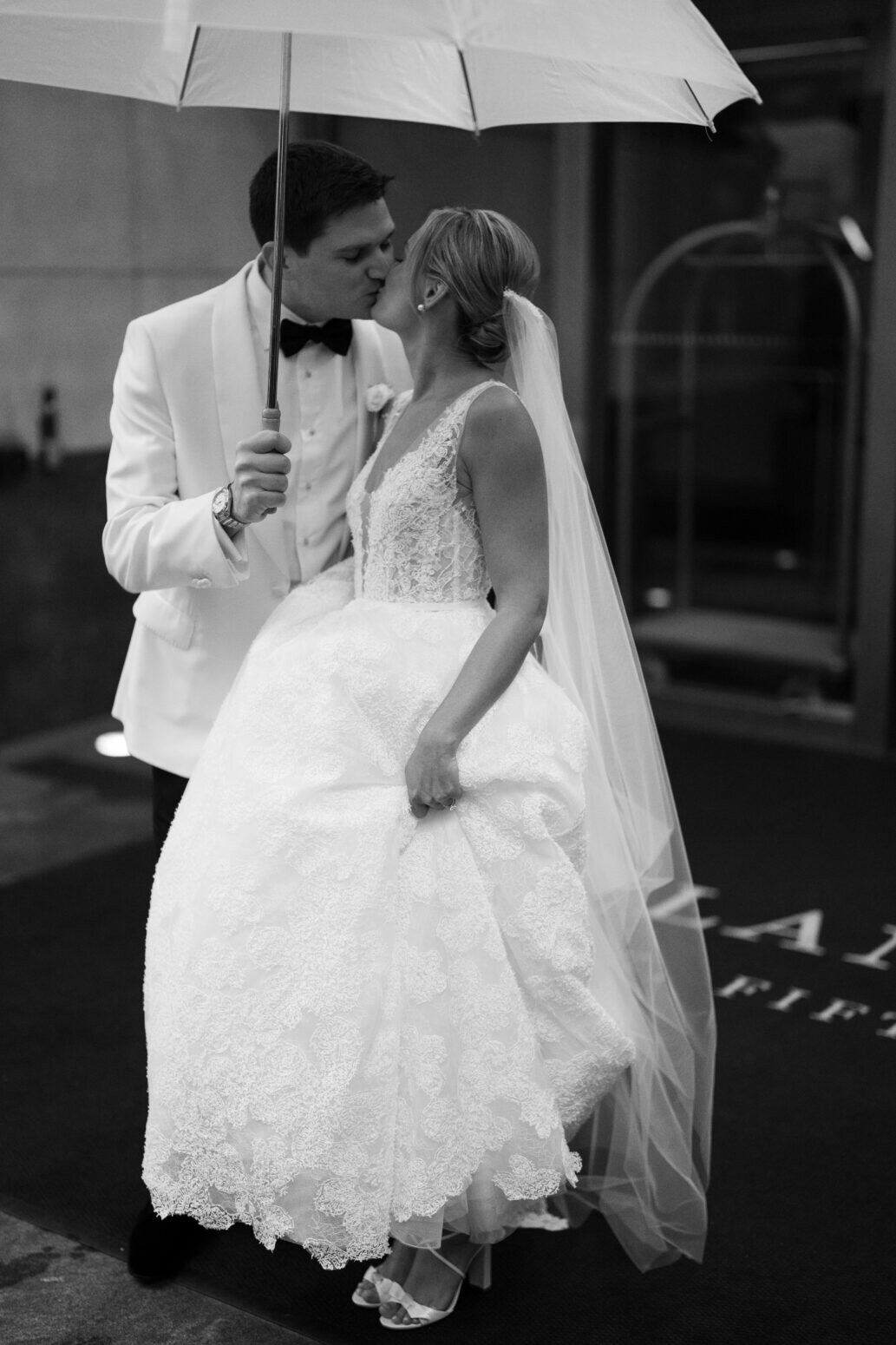 Saturday morning, Kenzie and her bridesmaids were getting ready at Langham Hotel, and then headed downstairs for her first look with Henry. Even though the rain kept coming down, everyone had the best attitudes, and made the most of the rain and iconic umbrella photos!